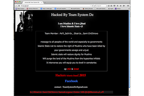 Visitors were greeted with an Isis propaganda message left by hackers who claimed themselves as “Team System Dz,” according to the Jamaica Observer.
