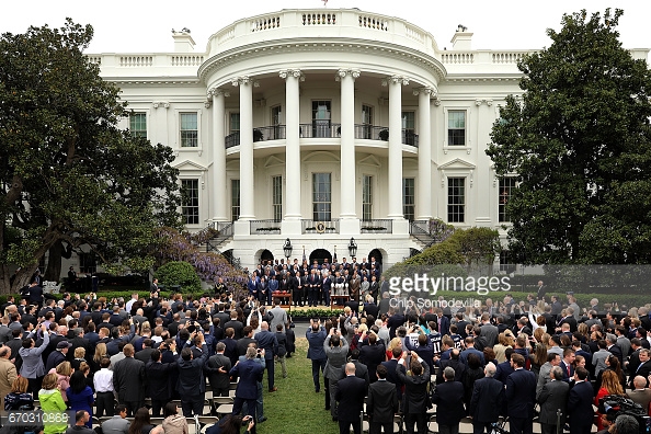 Trump welcomed the Super Bowl champion New England Patriots to the White House Wednesday afternoon saying: “What a great day it is to be with all of our friends at the White House. We celebrate the Super Bowl New England Patriots, world champions, Super Bowl champions — champions, period — and their historic win. (Applause.) And they are champions.”