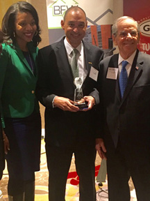 Don Wehby who, accepted the award at the Hotel Palomar in Philadelphia, PA for his leadership in making GraceKennedy a major player in the global marketplace; for the company’s commitment to investing in downtown Kingston by building a world class headquarters there and for GraceKennedy’s commitment to the ISSA/GraceKennedy High School Championships; its major sponsorship of the Penn Relays and its 22-year commitment to Team Jamaica Bickle.