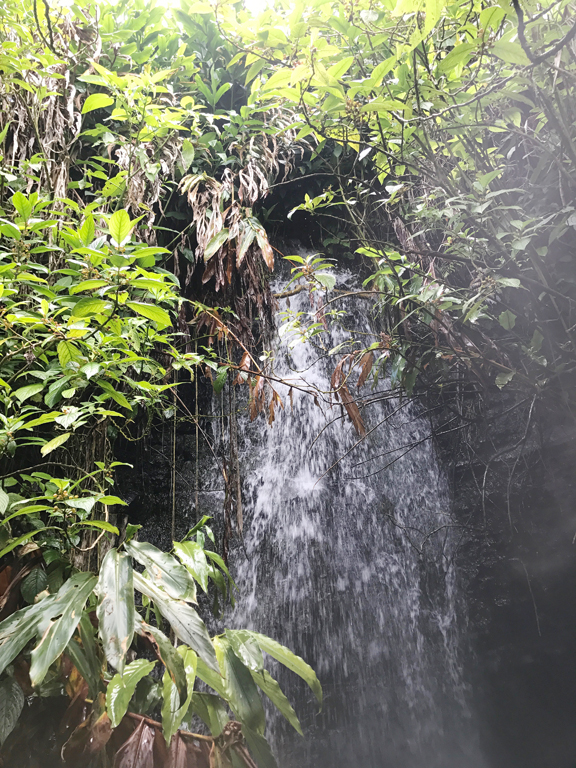 The water cascades from some unknown location in the mountains, down the volcanic rocks, into a pool below. Sunlight on the vegetation hits the water, giving it an ethereal look and causing you to have thoughts of heaven and spiritual beauty as you stay absolutely silent in reverence.