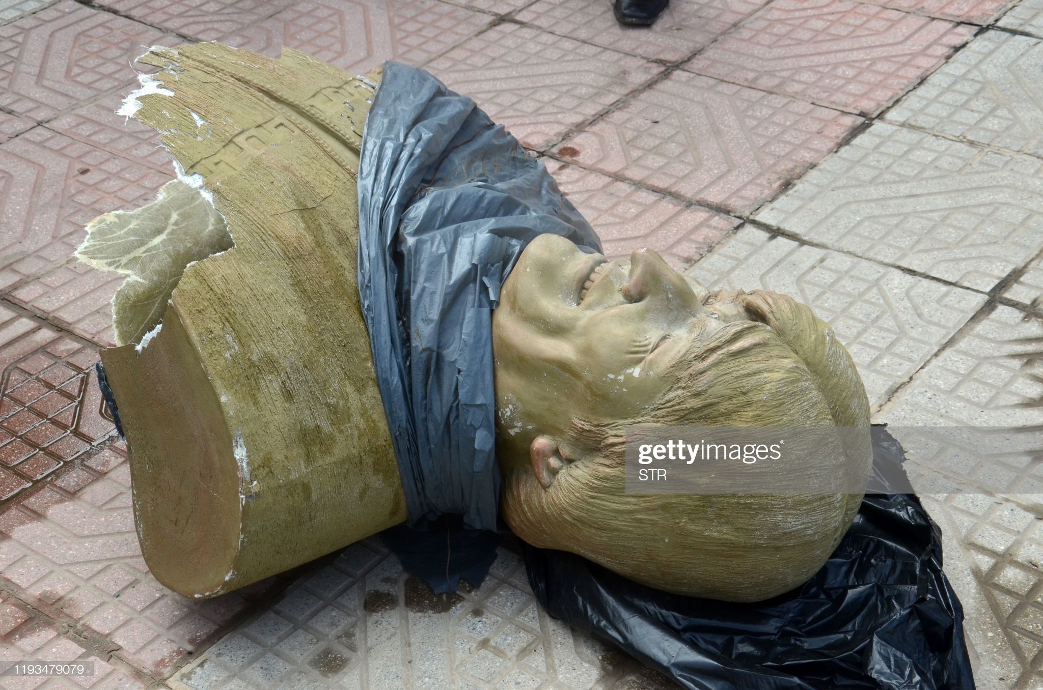 On Monday, Jan. 13, 2020, employees of the Bolivian Ministry of Sports knocked down a bust of the former Bolivian President outside a sports center in Cochabamba, Bolivia.