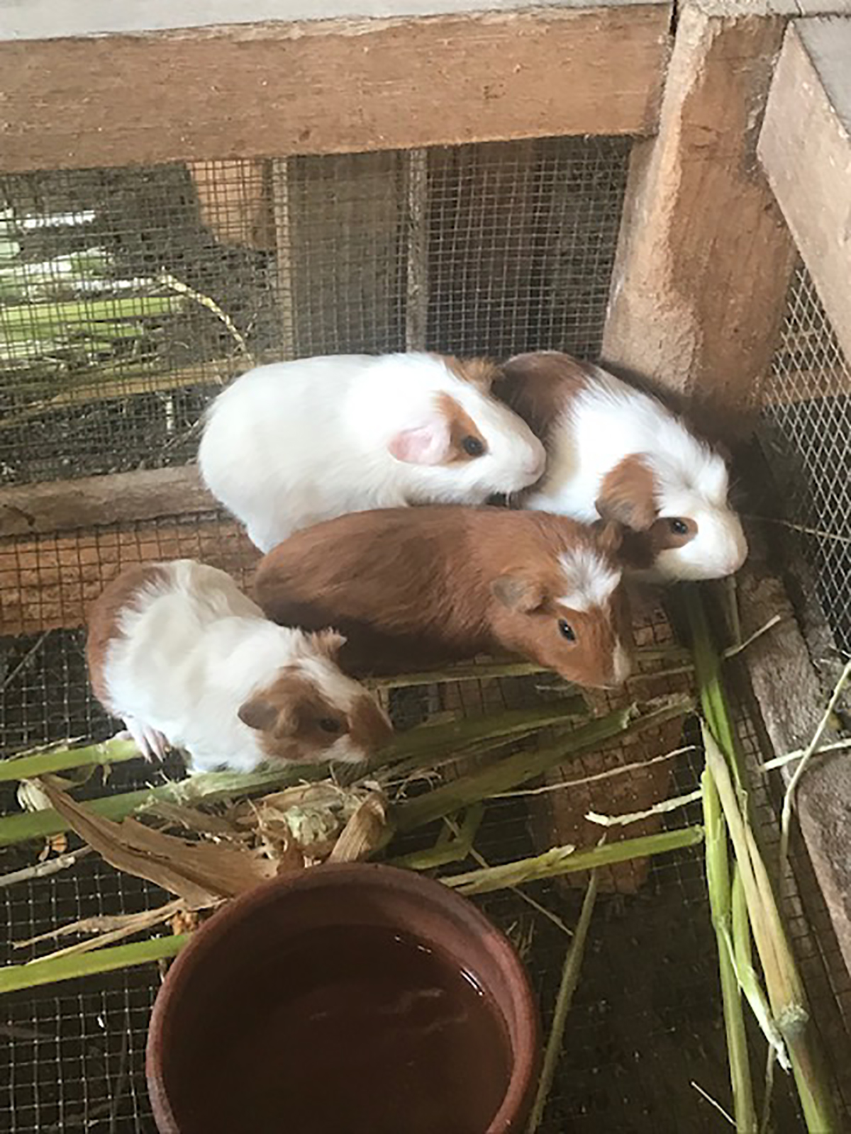 Mariela Lizarme Llocclla, a cuy farmer, originally raised cattle. It used to take her two years to rear a calf, a year to raise a pig and seven months for a chicken. With an initial investment of 100 soles she bought two cuy. In three months she had guinea pigs to sell in the local market. She uses the animals’ manure to fertilize pastures used to grow alfalfa to feed the cuy. Organic fertilizer reduces costs and increases profit margins.