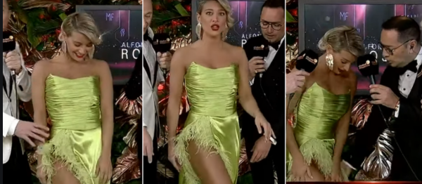 And Sol Perez, Argentina’s ‘sexiest weather girl,’ had a wardrobe malfunction of sorts at a recent awards ceremony after an awards show presenter tugged her dress and inadvertently exposed her nether regions.