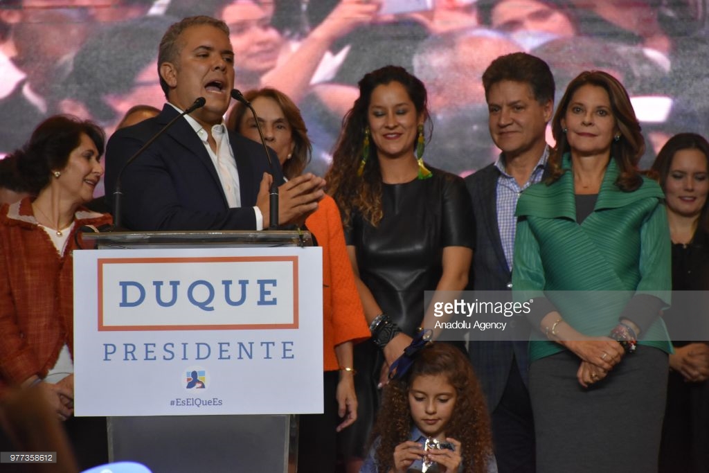 Duque, of the conservative Democratic Center party, won the second round of the Colombian presidential election on Sunday, claiming 53.97 percent of the votes after 99.76 percent of the votes were counted.