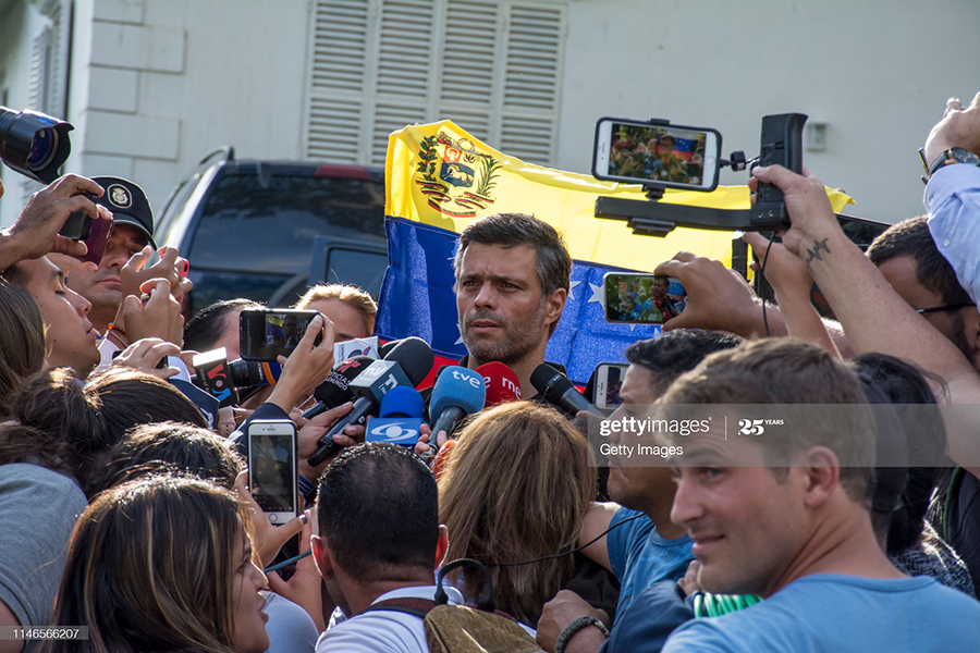 In April 2019, when Guaido tried to spur a military revolt against Maduro, Lopez appeared on the streets again alongside him. When the uprising fizzled, Lopez sought shelter first in the Chilean diplomatic residence and then at the home of the Spanish ambassador.