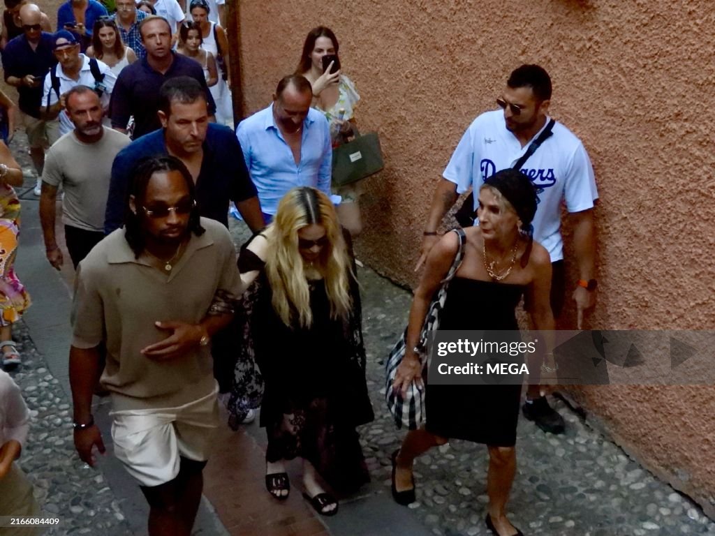 The couple was recently enjoying the scenic streets of Portofino, Italy, just ahead of Madonna’s 65th birthday on August 16th. The pop legend – Madonna appeared relaxed and content, holding onto Akeem Morris’s arm as they explored the charming locale. Their romantic getaway included a leisurely al fresco lunch with friends, enhancing the laid-back atmosphere of their Italian retreat. As always, Madonna turned heads with her bold fashion choices, wearing a stunning black gown paired with a dramatic lace overlay that flowed down to her ankles, complete with a cape.