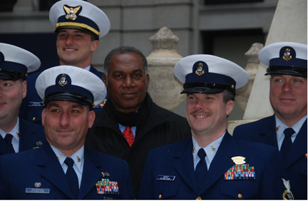 - Premier of Nevis Vance Winkworth Amory, 2nd from l, with Coast Guard Capt. Loebl, Commander of Sector New York of the US Coast Guard, far. r. (Arthur Piccolo image)