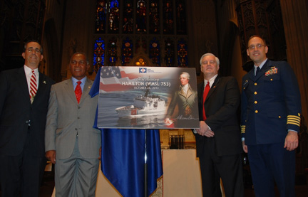 Meanwhile, Capt. Loebl, Commander of Sector New York of the US Coast Guard, revealed that the USCGC HAMILTON (WMSL 753), the fourth Legend-class cutter of the United States Coast Guard which Hamilton founded, is scheduled to be delivered to the Coast Guard in September 2014. The cutter will be homeported in Charleston, S.C. the United States.
