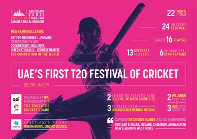 DUBAI, United Arab Emirates, June 13, 2018 /PRNewswire/ — A new elite international T20 cricket league, organised in partnership with the Emirates Cricket Board (ECB) and sanctioned by the International Cricket Council (ICC), is set to take place in the UAE this December 2018 – January 2019.