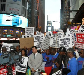 Some 140 Haitian-Americans and their supporters marched from City Hall to protest the Dominican Republic’s plans to deport tens of thousands of Haitians born in the Dominican after 1929, but stripped of their citizenship by the country’s high court two years ago.