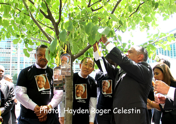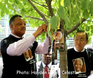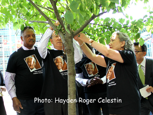 Also participating in Friday’s event were Reverend Jesse Jackson, former New York City Mayor David Dinkins, and Nelson Mandela’s grandson, Kweku Mandela.