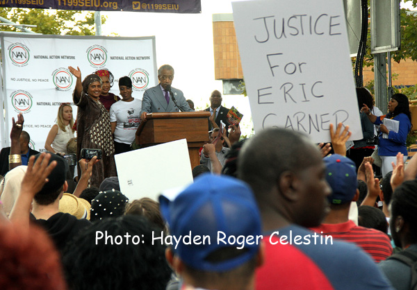 News Americas, STATEN ISLAND, NY, Sat. Aug. 23, 2014: Hundreds including the mother of murdered police victim, Amadou Diallo and Grenadian American City Councilmember, Jumanee Williams joined the Rev. Al Sharpton at a rally against police brutality in Staten Island, NY on Saturday.