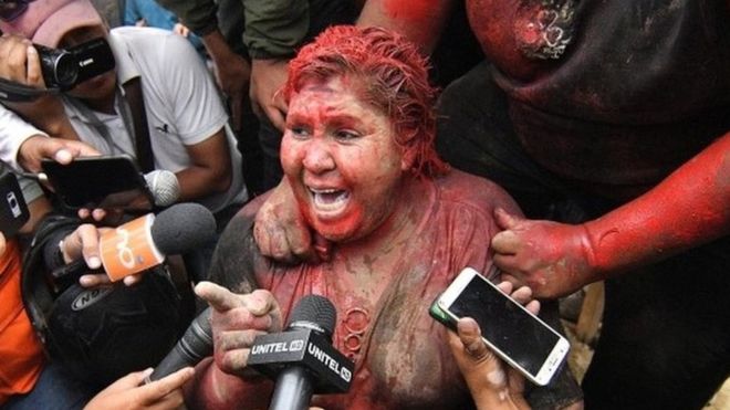 News Americas, La Paz, Bolivia, BBC News: The mayor of a small town in Bolivia has been attacked by opposition protesters who dragged her through the streets barefoot, covered her in red paint and forcibly cut her hair.