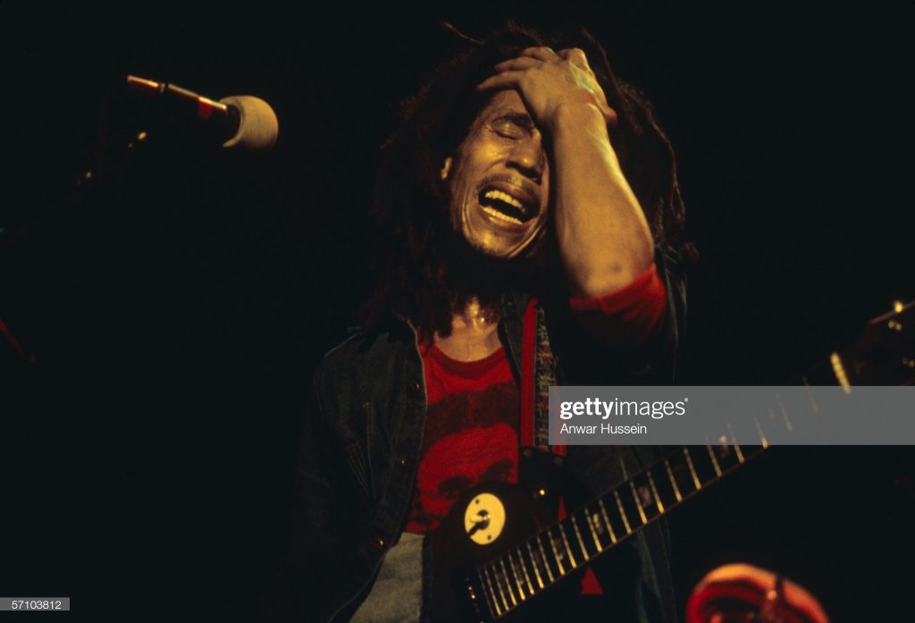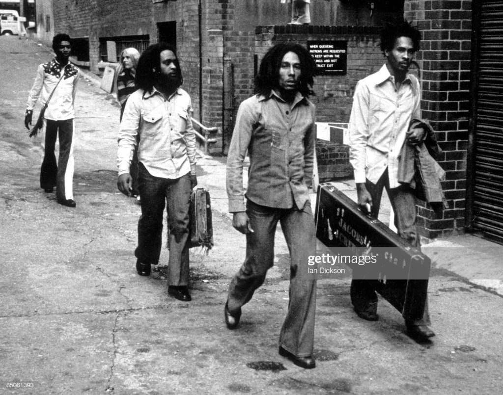 Bob Marley and the wailers (L-R Peter McIntosh ‘Tosh’, Aston ‘Family Man’ Barrett, Bob Marley, Earl ‘Wire’ Lindo, Carlton ‘Carly’ Barrett and Neville ‘Bunny’ Livingston) pose for a portrait in 1973 in London, England. (Photo by Michael Ochs Archives/Getty Images)UNITED KINGDOM – JULY 19: BIRMINGHAM Photo of Bob MARLEY and WAILERS, Bob Marley and the Wailers arriving at Birmingham Odeon (Photo by Ian Dickson/Redferns)Al Anderson and Bob Marley of The Wailers perform on stage at the Odeon, Birmingham, United Kingdom, 18 July 1975. (Photo by Ian Dickson/Redferns)Aston ‘Family Man’ Barrett and Bob Marley of The Wailers playing guitar and keyboards backstage at the Odeon, Birmingham, United Kingdom, 18 July 1975. (Photo by Ian Dickson/Redferns) Jamaican reggae musician Bob Marley (1945-1981) posed on a river boat in Amsterdam, Netherlands in 1976. (Photo by Gijsbert Hanekroot/Redferns)Jamaican reggae singer Bob Marley (1945 – 1981) performing on stage, circa 1975. (Photo by Anwar Hussein/Hulton Archive/Getty Images)BOB MARLEY 1979 Pauley Pavilion UCLA (Photo by Chris Walter/WireImage)