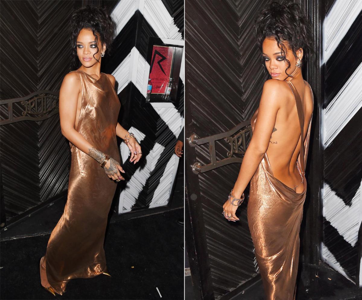 But it was the after-party where the wild Bajan side of the singer, who recently posed semi-nude for a French skin magazine, came out. RiRi showed her bad girl side by baring her butt crack to her guests in a sexy gold dress. Our spies say the party was off the chains as would be expected of a real Caribbean party!