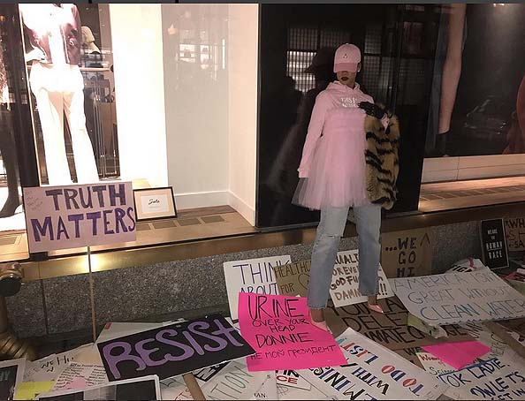 Rihanna stands over strewn signs at the Women’s March in NYC. (Instagram image)