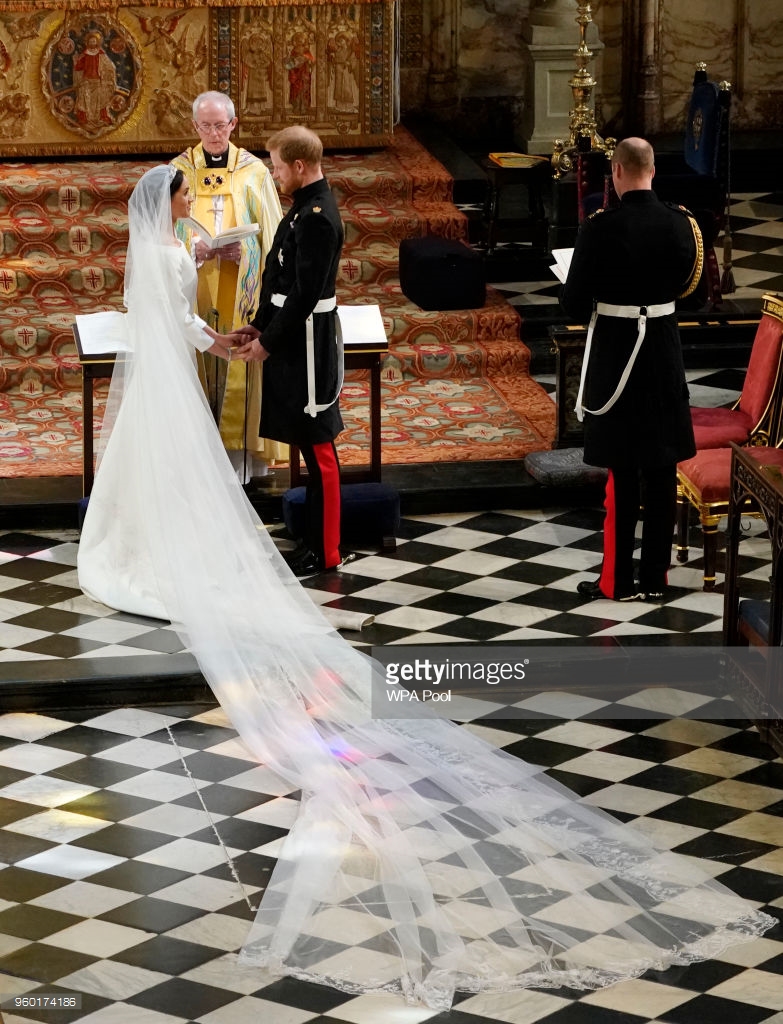 Givenchy’s artistic director, and the designer of her wedding gown, Claire Waight Keller, designed a veil “representing the distinctive flora of each Commonwealth country united in one spectacular floral composition.”