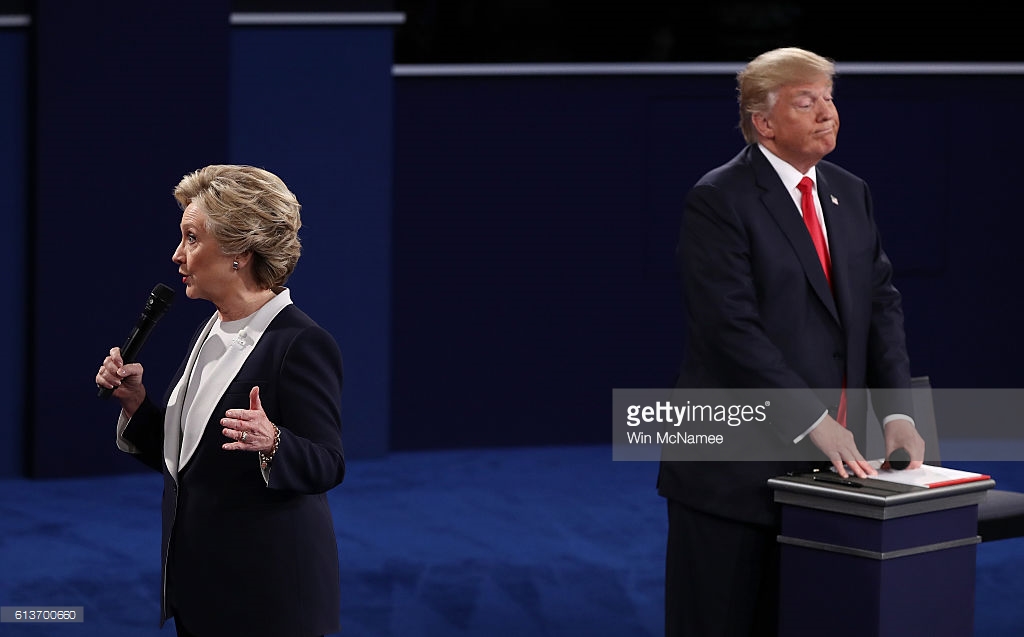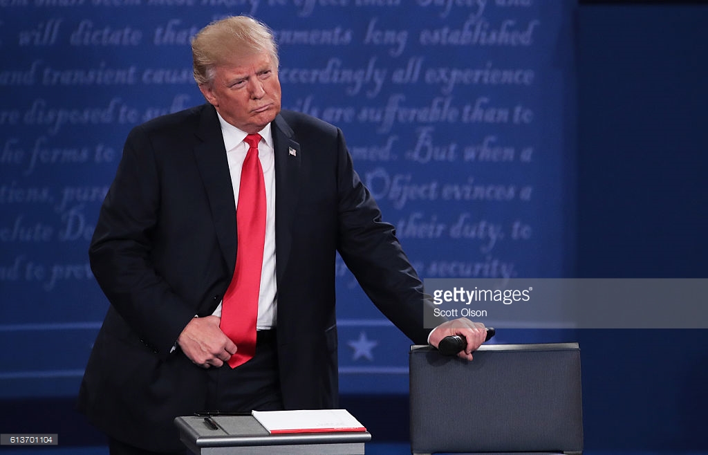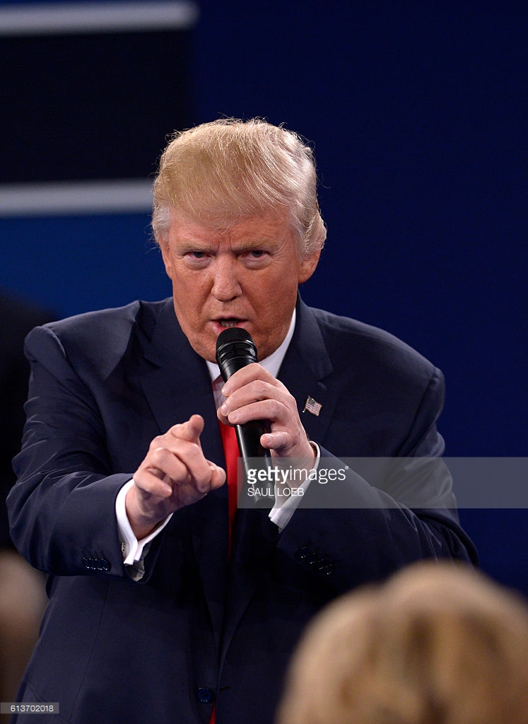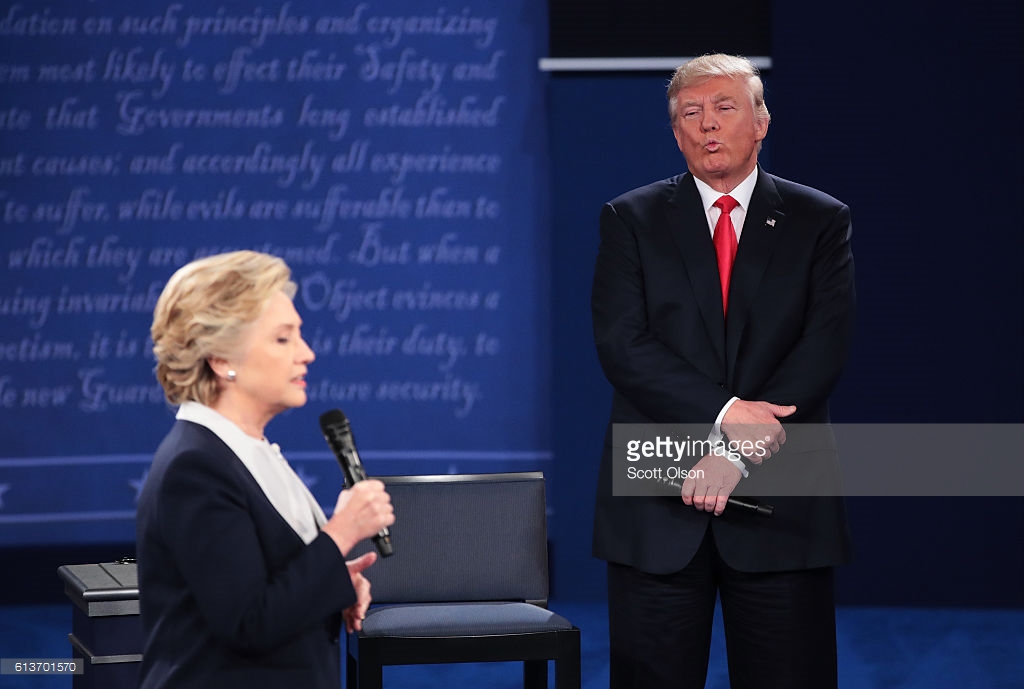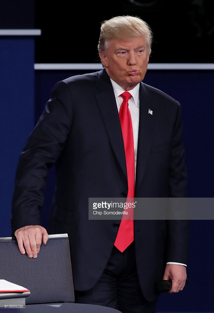 News Americas, NEW YORK, NY, Mon. Oct. 10, 2016: GOP Presidential candidate Donald Trump brushed aside the ‘grab them by the pussy’ comment and came out swinging with the kitchen sink and all its gunk at Democratic contender Hillary Clinton Sunday night as the second Presidential debate quickly zoomed up to 10 on the scale of ‘nasty.’ But the Trumpster’s comments were as nasty as the expressions he made. Here are ten of the sour-puss faces Trump made at the debate that captured what is bound to be THE ‘night of the nasty’ in Presidential debate history: