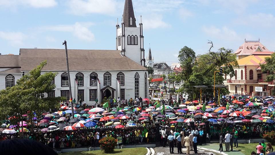Thousands, frustrated by days of waiting for the official election results, then gathered in the area outside of the Parliament building to celebrate the new head of state and a new era in Guyana. The country for the first time in its independent history will be served by a coalition government of “national unity.”