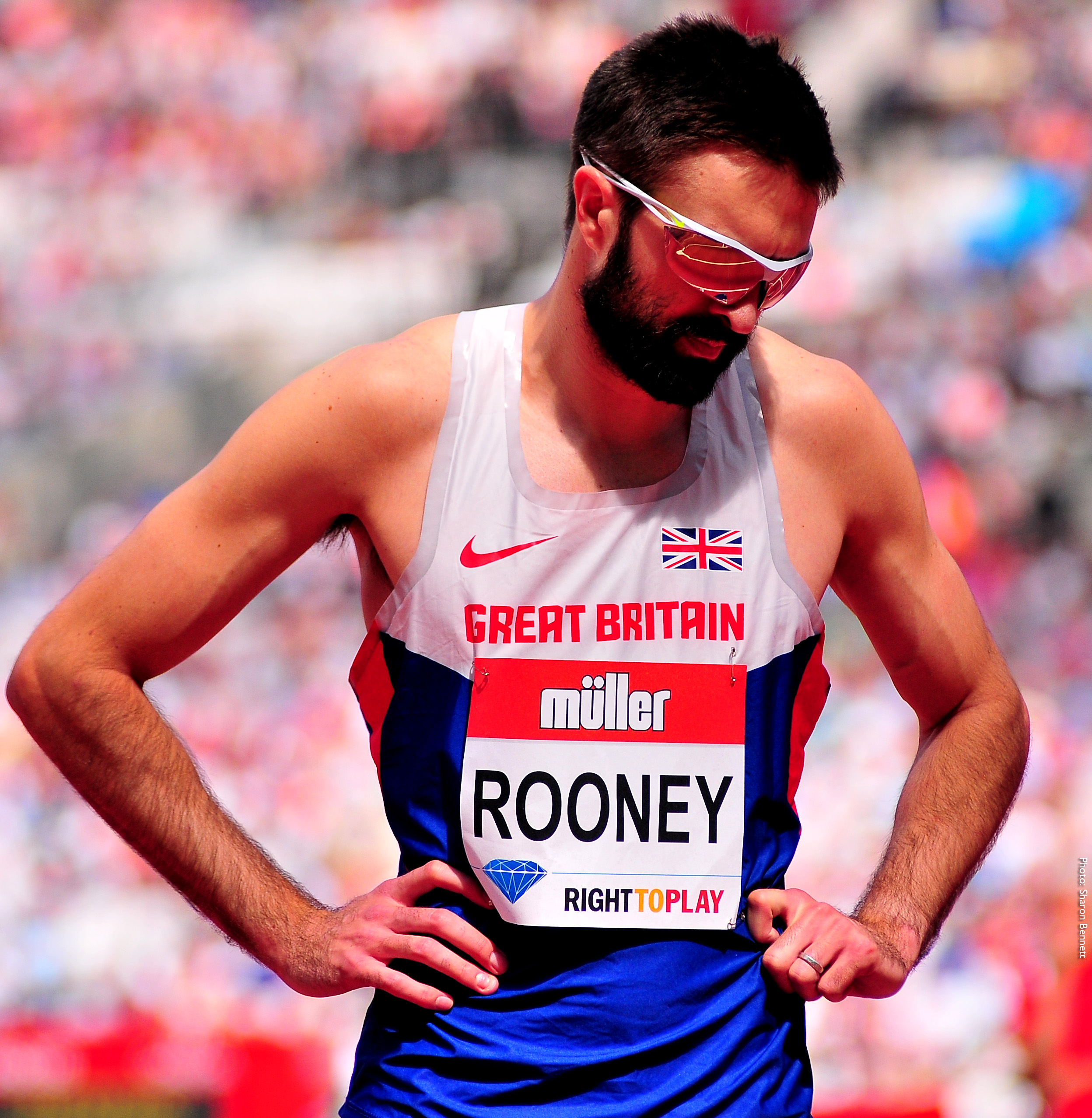 Martyn Rooney of Great Britain leaves the track after he is disqualified for a false start during Day Two of the Muller Anniversary Games. (Sharon Bennett Image)