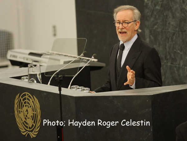 Giving the keynote speech at the ceremony, film director, writer and producer Steven Spielberg, whose film, Schindler’s List, about a German businessman who saved over 1,000 mostly Polish-Jewish refugees during the Holocaust by employing them in his factories, won seven Oscars, stressed that the world cannot emerge from the Holocaust until there are no more genocides, until “the unthinkable becomes impossible…”