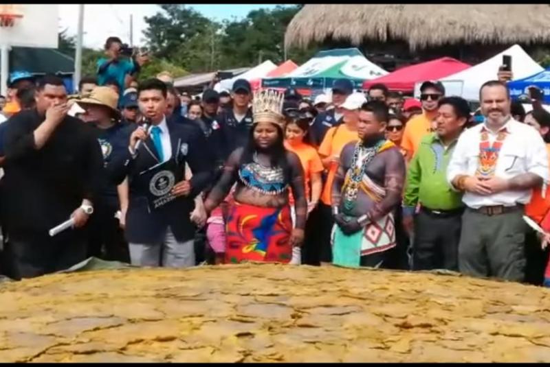 The Ipeti Embera indigenous Embera community worked with the Impacta company and a team of chefs to cook up the enormous patacon from 1,200 plantains and 330.2 gallons of oil.